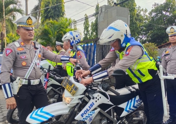 SATLANTAS Polres Probolinggo melakukan pengecekan kesiapan kendaraan operasional dan pembentukan tim urai antisipasi kemacetan saat mudik lebaran dilakukan langsung oleh Kasat Lantas Polres Probolinggo AKP Sapari, pada Senin (3/4/2023).