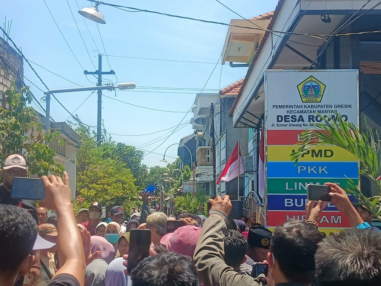 Bertempat di balai Desa Roomo, puluhan warga yang kebanyakan emak-emak menggelar aksi demo, memprotes beras jelek dan menuntut kejelasan soal pengadaan beras bantuan dari sebuah perusahaan yang berada di Desa Roomo.