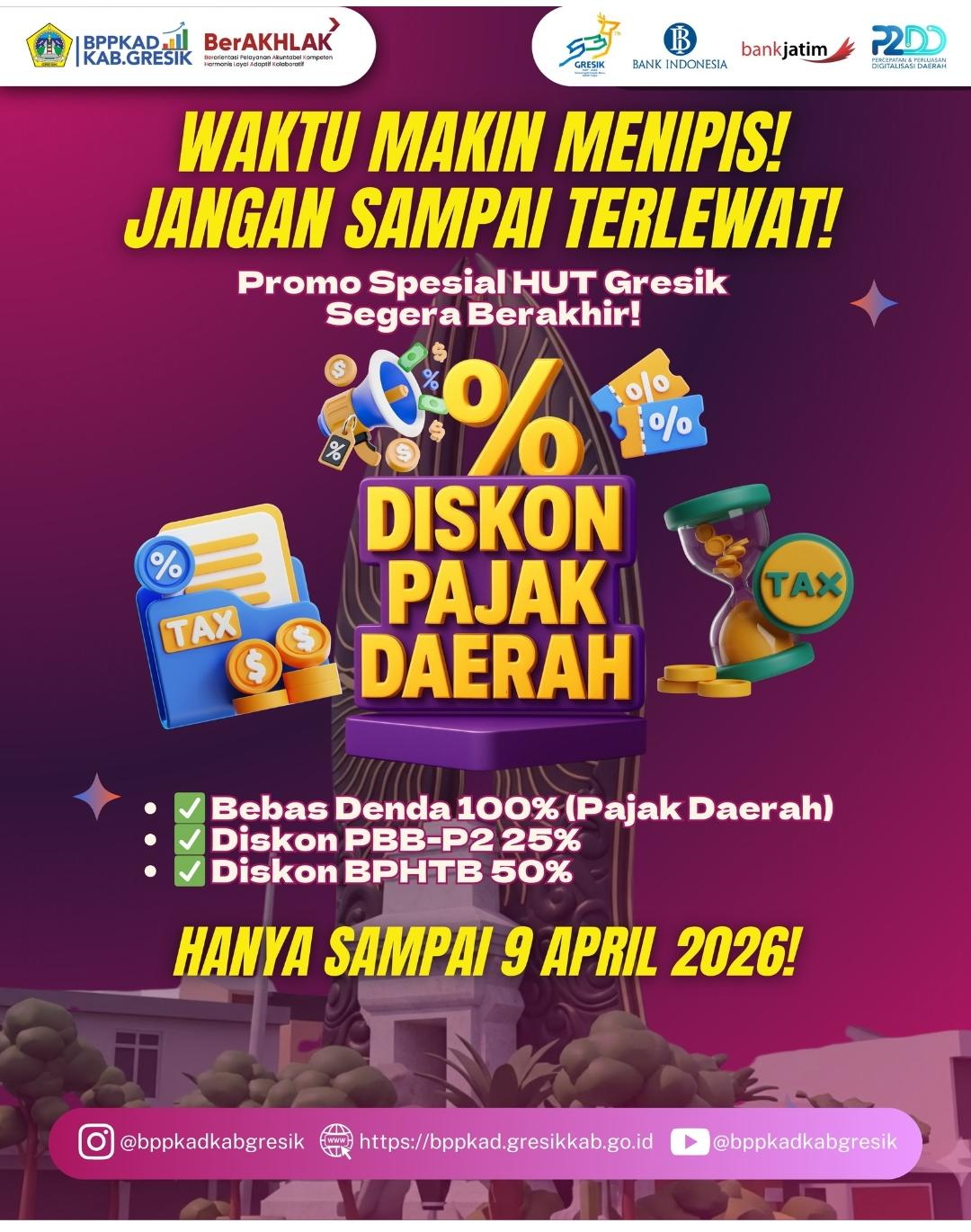 Gresik– Menjelang berakhirnya program relaksasi pajak daerah dalam rangka HUT Kota Gresik pada 9 April besok, Badan Pendapatan, Pengelolaan Keuangan, dan Aset Daerah (BPPKAD) Kabupaten Gresik melakukan langkah ekstra antisipasi lonjakan wajib pajak.